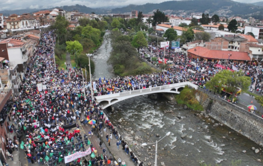Cuenca, Ecuador.- Ante más de cien mil personas que marcharon en Cuenca para rechazar nuevos proyectos mineros, el presidente de la Conferencia Episcopal Ecuatoriana enunció cuatro principios éticos que desafían las políticas extractivistas en el país latinoamericano.