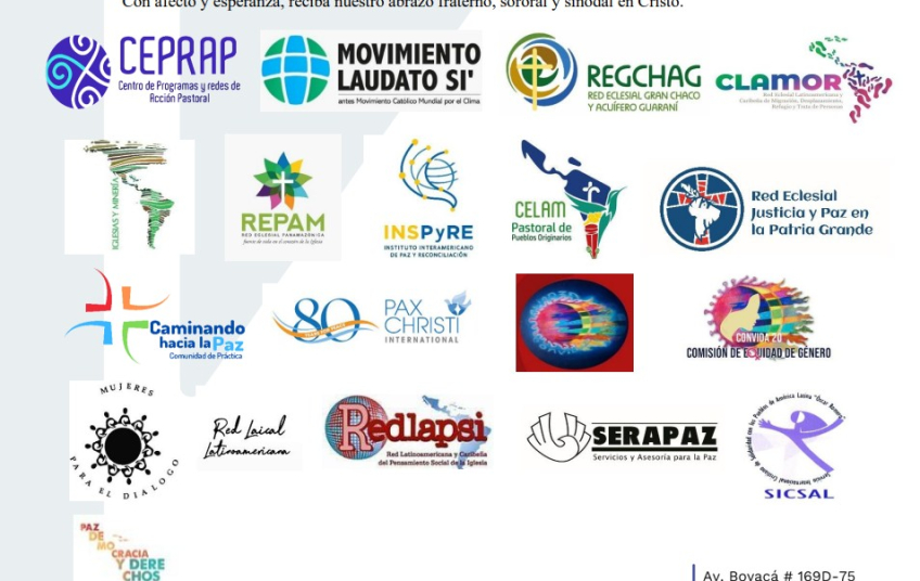 Entre las entidades firmantes se encuentran algunas de las redes eclesiales más influyentes de la región, como la Red Eclesial Ecológica Mesoamericana (REMAM), la Red Eclesial Justicia y Paz en la Patria Grande, y el Servicios y Asesoría para la Paz (SERAPAZ), lo que confiere a la carta un peso significativo dentro del mundo católico latinoamericano.
