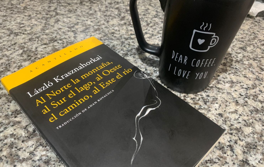 Que fue lo que me ocurrió con el libro del Nobel de Literatura 2025 László Krasznahorkai, con el título tan largo como “Al Norte la montaña, al Sur el lago, al Oeste el camino, al Este el río”. Debo decir que el libro me escogió. Ya tenía Tango satánico para comenzar a leerlo cuando apareció este en la librería de nuevos que visito más a menudo. Increíble que estuviera allí. Pero estaba. Lo agradezco.
