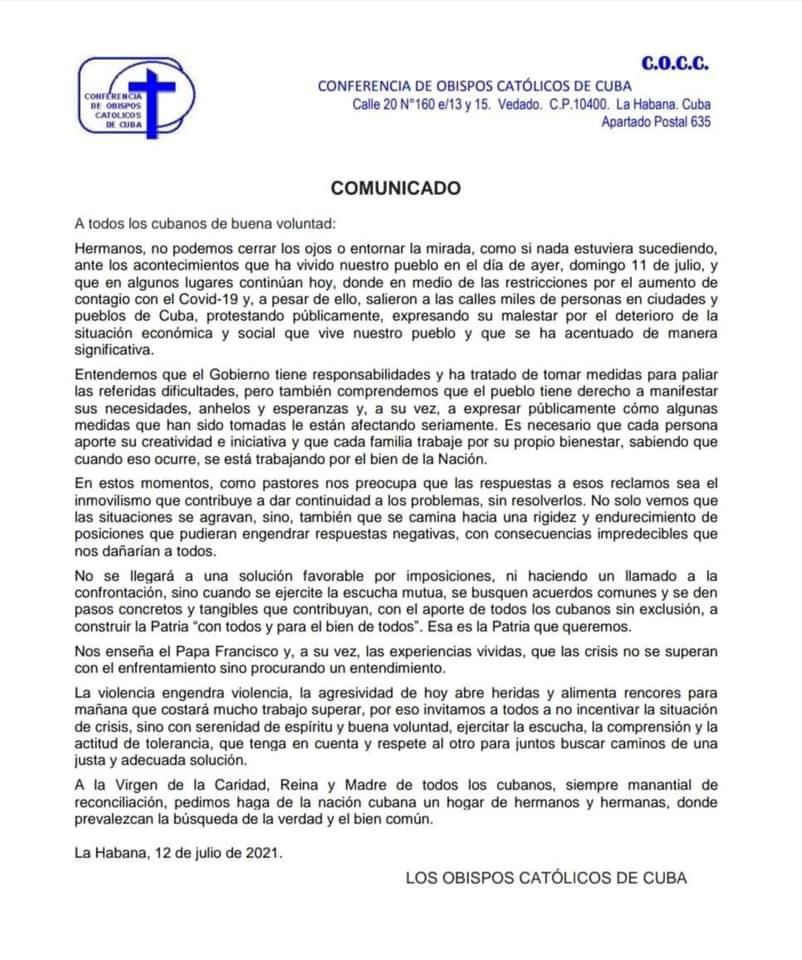 Comunicados 210712-Conferencia de Obispos Católicos de Cuba-No podemos cerrar los ojos o entornar la mirada Felipe Monroy 12 Julio 2021 Share On Facebook Share On Twitter Category Comunicados Hits 1363 times Anterior Siguiente tweet