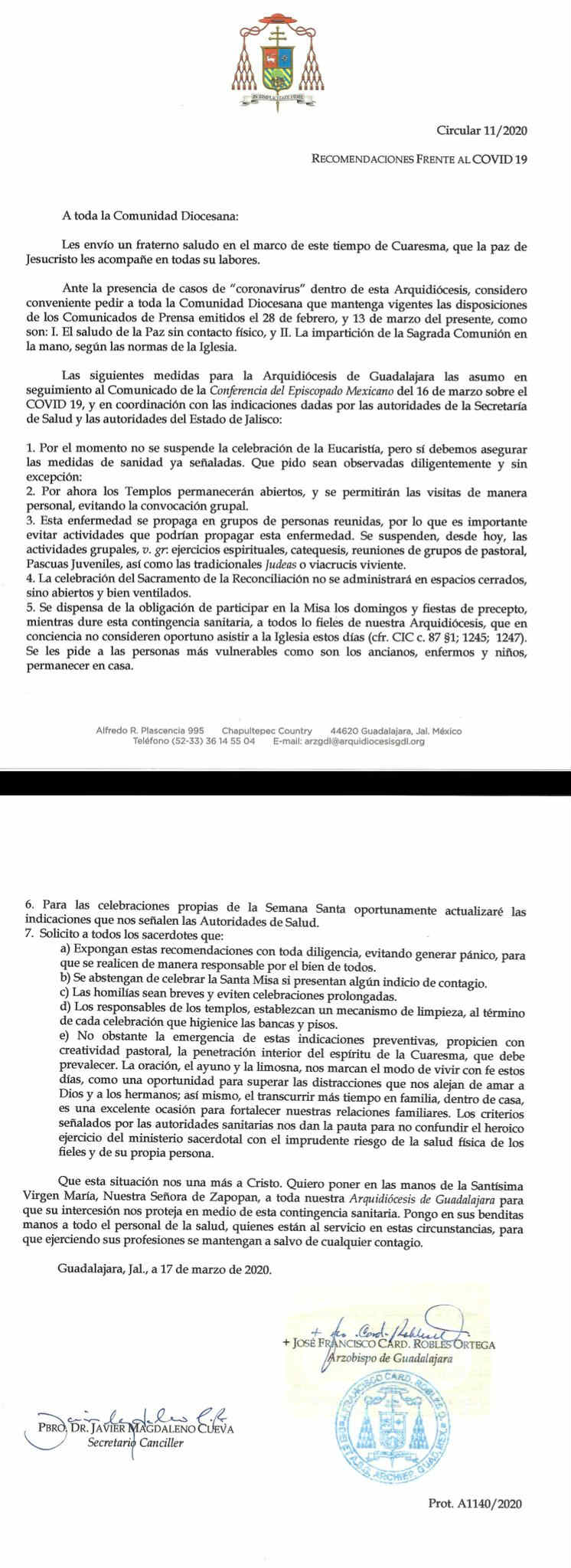 Comunicados 200317-Arquidiócesis de Guadalajara-Recomendaciones frente al COVID-19 Felipe Monroy 17 Marzo 2020 Share On Facebook Share On Twitter Category Comunicados Hits 1711 times Anterior Siguiente tweet
