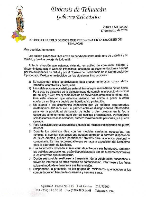 Comunicados 200317-Diócesis de Tehuacán-Ante la situación que estamos viviendo Felipe Monroy 17 Marzo 2020 Share On Facebook Share On Twitter Category Comunicados Hits 1514 times Anterior Siguiente tweet