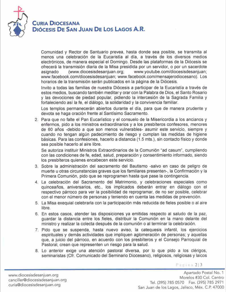 Comunicados 200317-Diócesis de San Juan de los Lagos-Circular sobre COVID 19 Felipe Monroy 17 Marzo 2020 Share On Facebook Share On Twitter Category Comunicados Hits 1731 times Anterior Siguiente tweet
