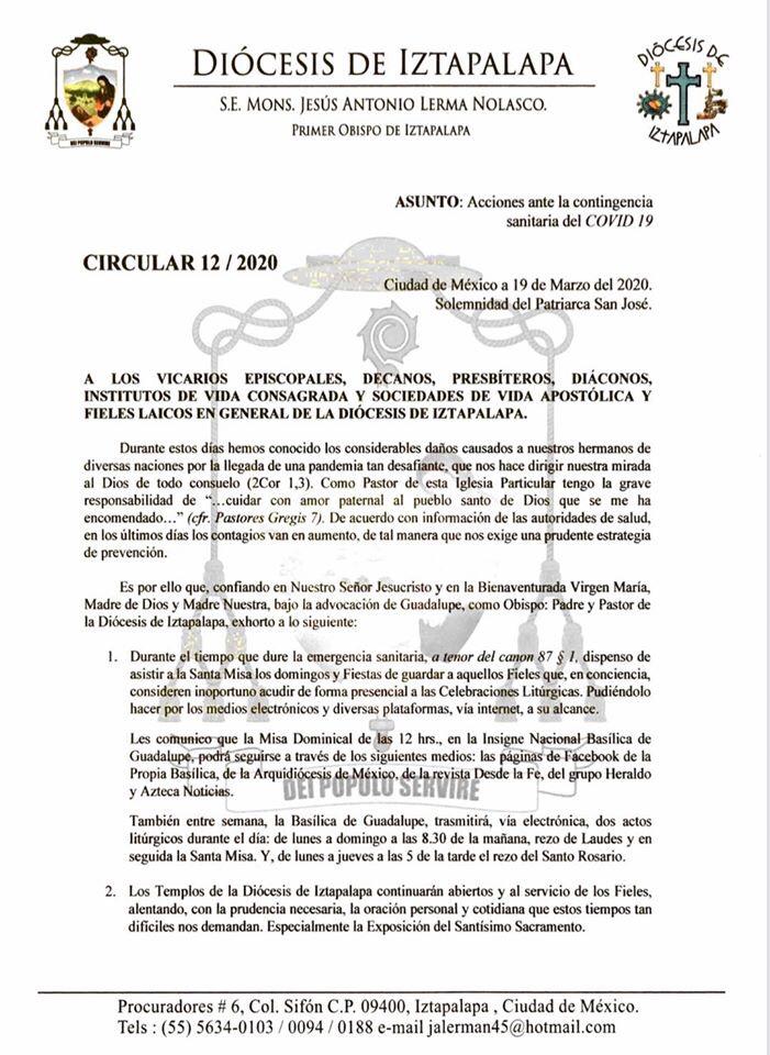Comunicados 200319-Diócesis de Iztapalapa-Acciones ante la contingencia sanitaria del COVID 19 Felipe Monroy 20 Marzo 2020 Share On Facebook Share On Twitter Category Comunicados Hits 2115 times Anterior Siguiente tweet
