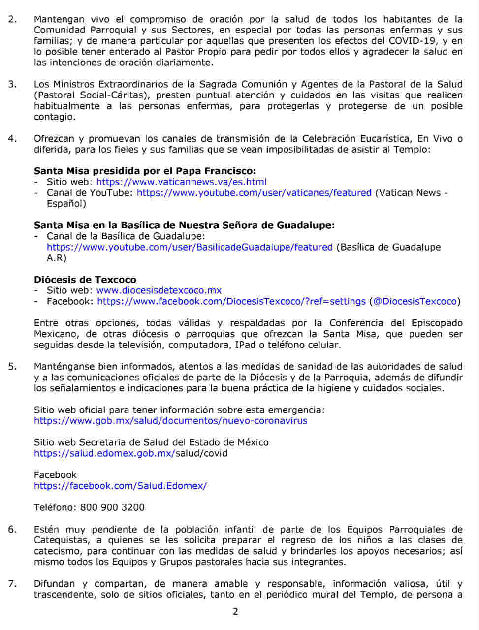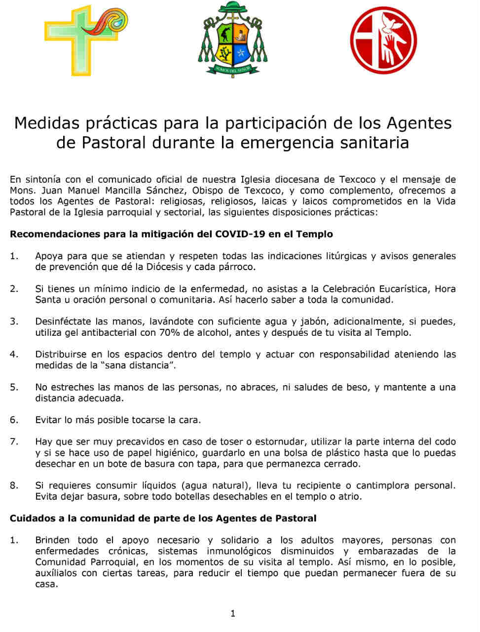 200319-Diócesis de Texcoco-Medidas prácticas para la participación de los agentes de pastoral durante la emergencia sanitaria