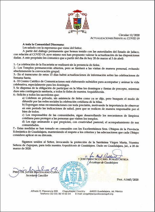 Comunicados 200320-Arquidiócesis de Guadalajara-Actualizaciones frente al COVID 19 Felipe Monroy 20 Marzo 2020 Share On Facebook Share On Twitter Category Comunicados Hits 1679 times Anterior Siguiente tweet
