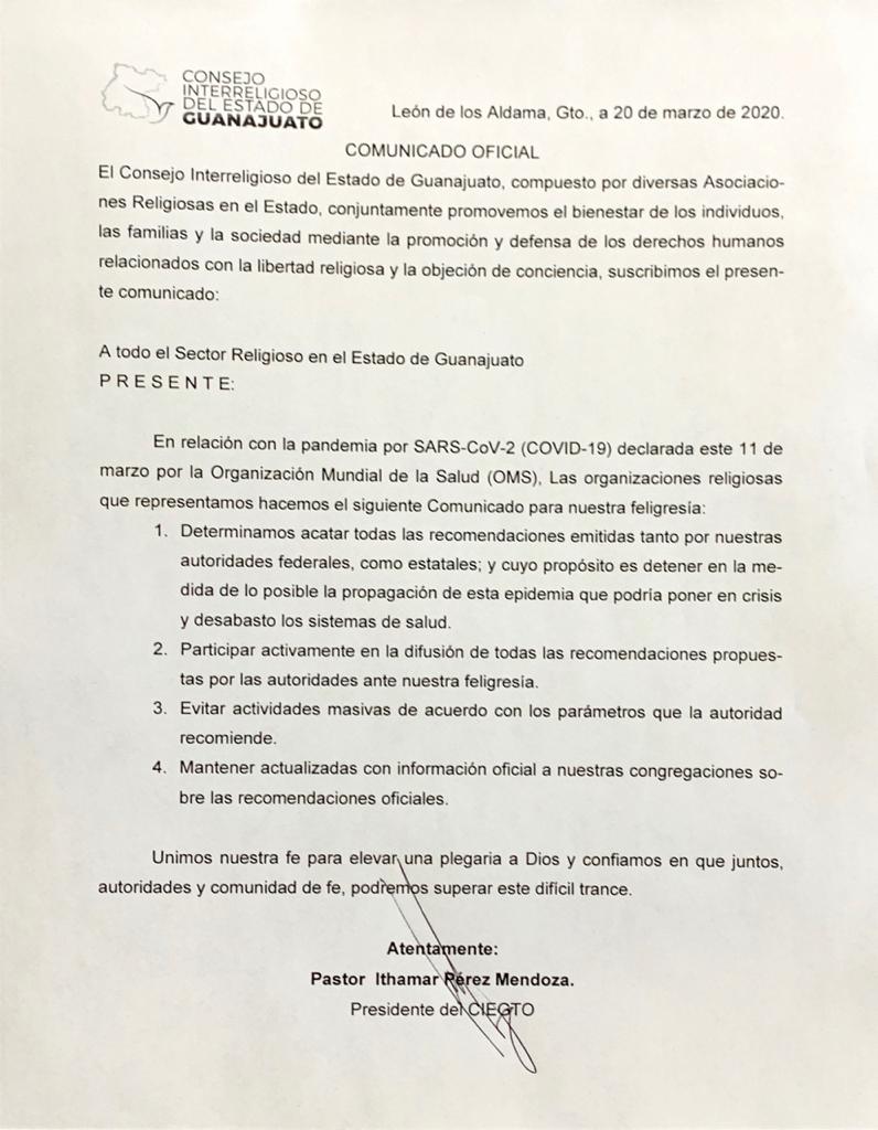 Comunicados 200320-Consejo Interreligioso de Guanajuato-En relación con la pandemia por SARS-CoV2 Felipe Monroy 20 Marzo 2020 Share On Facebook Share On Twitter Category Comunicados Hits 1650 times Anterior Siguiente tweet