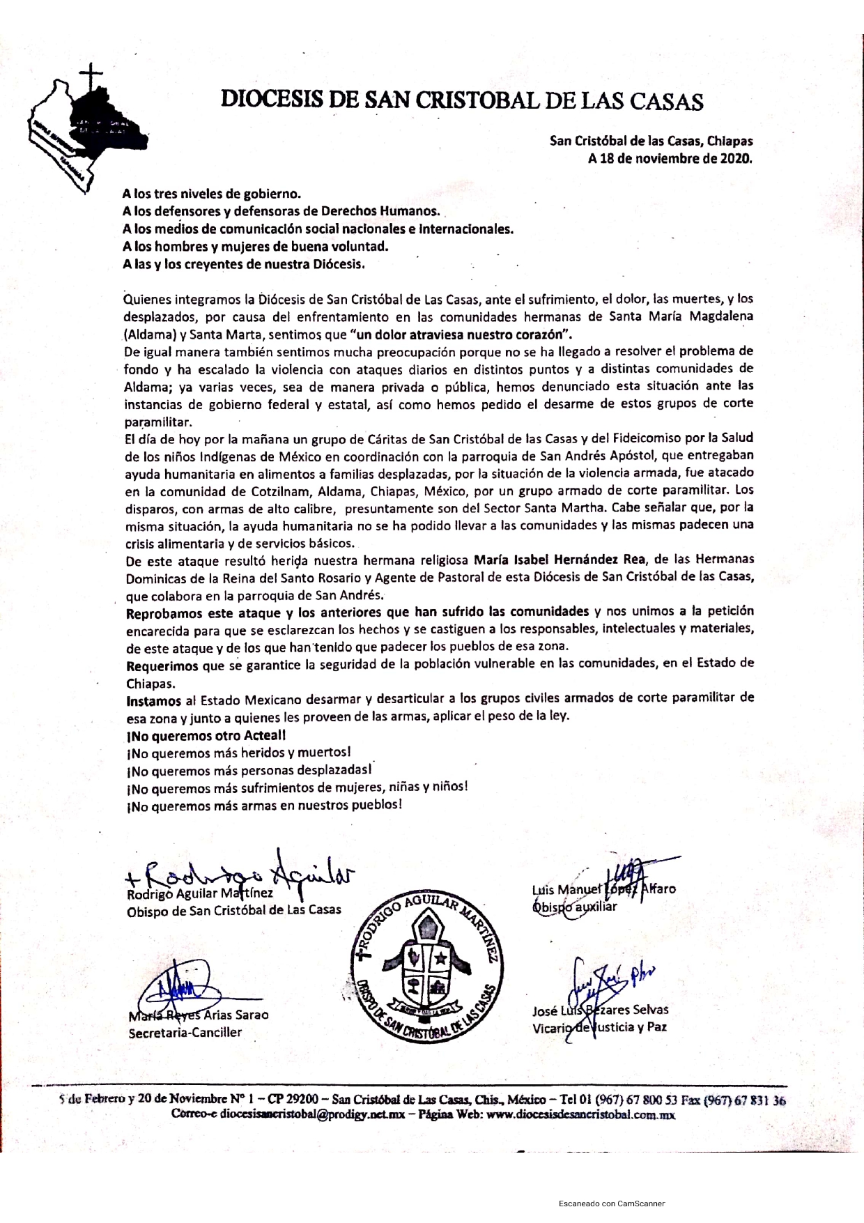 Comunicados 201118-Diócesis de San Cristóbal de las Casas-Ante el sufrimiento, el dolor, la muerte y los desplazados Felipe Monroy 18 Noviembre 2020 Share On Facebook Share On Twitter Category Comunicados Hits 1500 times Anterior Siguiente tweet