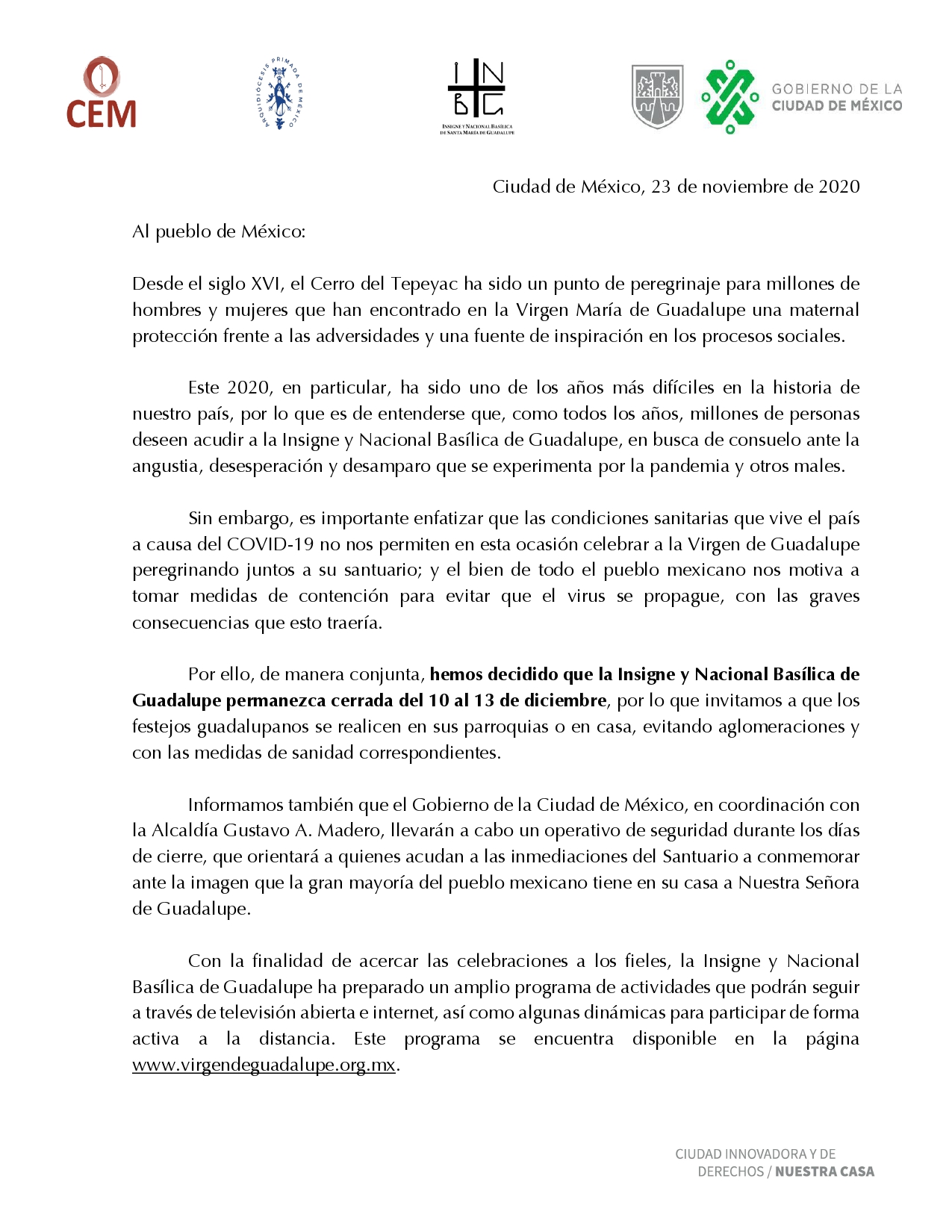 201123-Basílica de Guadalupe (Gob. CDMX)-Cierre definitivo de la Villa de Guadalupe para fiestas guadalupanas 2020