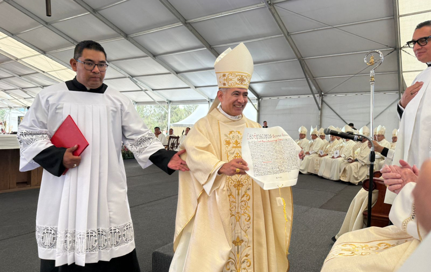Después de la liturgia de la palabra, el cardenal Aguiar predicó la homilía de la ceremonia reconociendo que la misión del obispo es acompañar al rebaño pues “el pastor tiene que ir atrás para recoger a las ovejas descarriadas… por eso estamos aquí, para ser buenos discípulos de Jesús”.