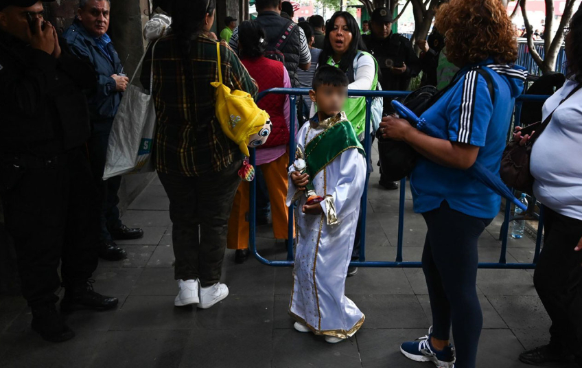 Entre la multitud de devotos destaca la voz inocente de Jaime, un pequeño que, acompañado de su abuelita, viajó desde el municipio de Nicolás Romero, Estado de México.