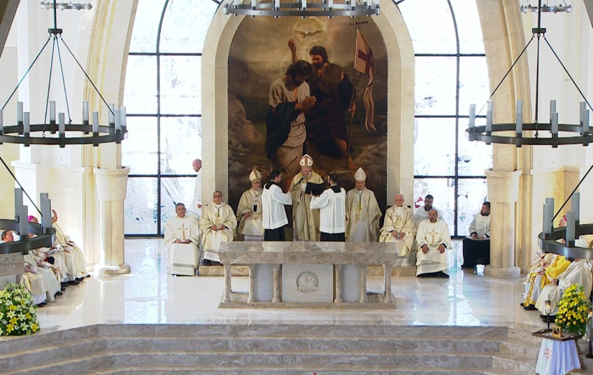 La misa incluyó momentos solemnes como la unción del altar con el Santo Crisma, el depósito de reliquias de san Juan Pablo II y los santos mártires de Damasco, y el incensamiento del altar. La iglesia, construida con piedra de Hebrón y con capacidad para más de mil personas, es uno de los templos más grandes de la región y está destinada a ser un lugar de peregrinación para los fieles.