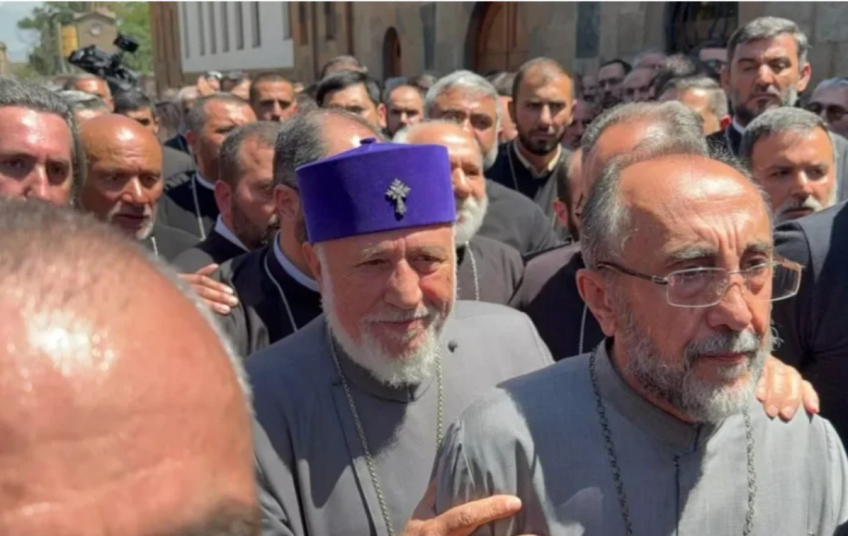 El Catholicós de todos los Armenios Karekin II, máxima autoridad eclesiástica, salió al encuentro de los agentes, algunos con rostros cubiertos. Ajapahyan negó las acusaciones y afirmó: "No me he escondido. Me persiguen, iré. La amenaza reside en el gobierno".