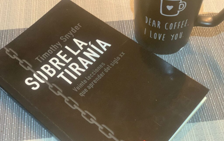 Por la tarde siguiente de la noche de tormenta andaba yo en la tienda del tecolotito. Seguían rebotando en mi cerebro los hechos del siglo XX, cuando un libro de portada negra me llamó la atención. Timothy Snyder escribió Sobre la tiranía, con el subtítulo Veinte lecciones qué aprender del siglo XX. Y es lógico suponer que salí con él. Un libro pequeño, de 150 páginas, en la que el autor da una serie de consejos aprendidos de la historia reciente.