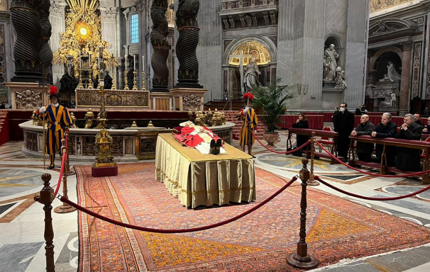 En la primera jornada, la gendarmería vaticana ha reportado la afluencia de 65 mil personas que han acudido a dar su último adiós a Benedicto XVI.