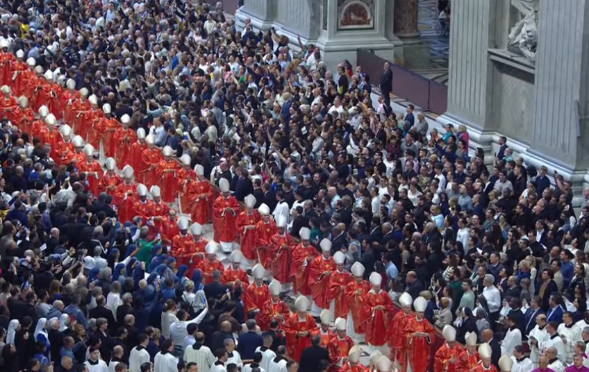 Ante una Basílica de San Pedro colmada de obispos, sacerdotes y miles de feligreses que hicieron largas filas para participar de la ceremonia, el cardenal Re advirtió a los cardenales electores que deben mantenerse unidos en la oración junto al pueblo de Dios que aguarda con confiada esperanza en que sea electo "el Papa que la Iglesia y la humanidad necesitan en este momento de la historia tan difícil y complejo".